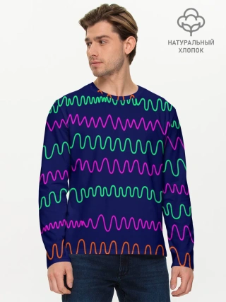 Мужской лонгслив базовый / Линии разными ручками на синем