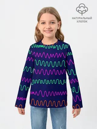 Детский лонгслив / Линии разными ручками на синем