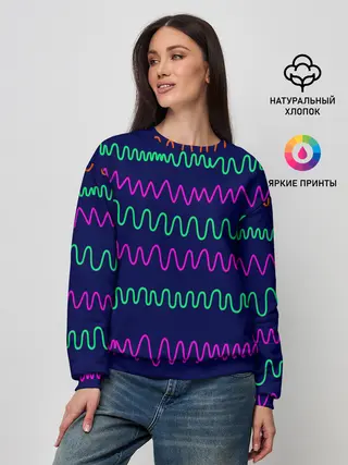 Женский свитшот / Линии разными ручками на синем