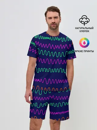 Мужской костюм с шортами / Линии разными ручками на синем