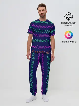 Мужская пижама с брюками / Линии разными ручками на синем