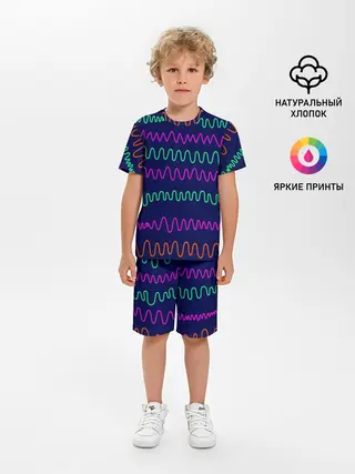 Детская пижама с шортами / Линии разными ручками на синем