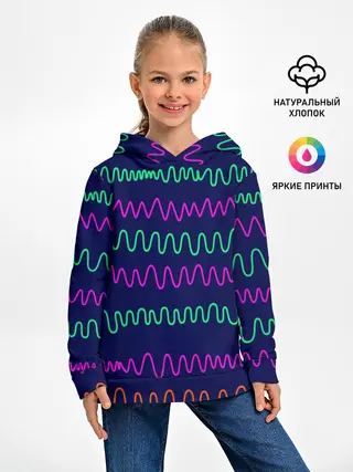 Детское худи / Линии разными ручками на синем