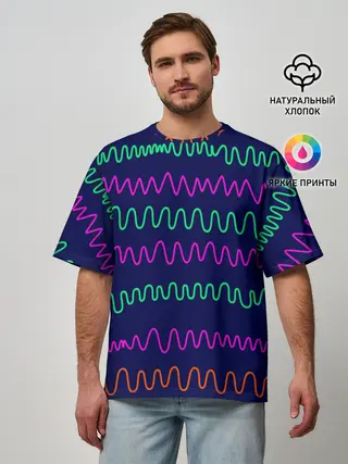 Мужская футболка оверсайз / Линии разными ручками на синем