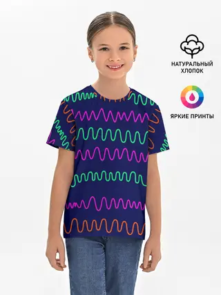 Детская базовая футболка / Линии разными ручками на синем