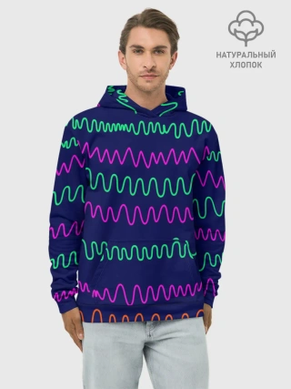 Худи мужской база хлопок / Линии разными ручками на синем