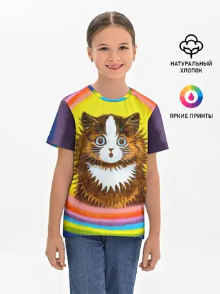 Детская базовая футболка / Радужный кот Луиса Уэйна