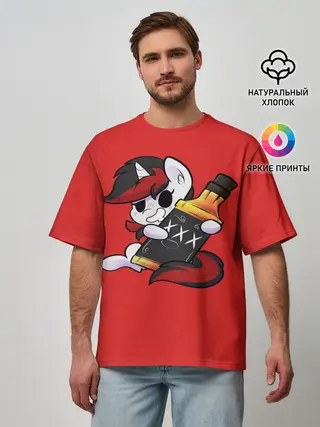 Мужская футболка оверсайз / Единорог с бутылкой
