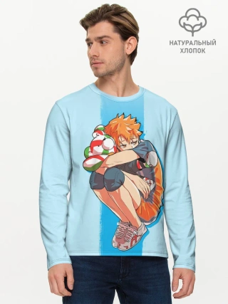 Мужской лонгслив базовый / Хината на синем фоне