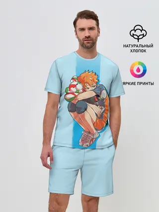 Мужской костюм с шортами / Хината на синем фоне
