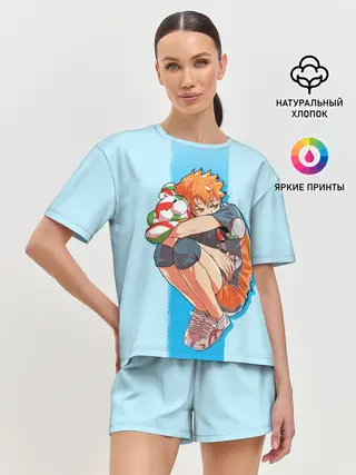 Женская пижама с шортами / Хината на синем фоне