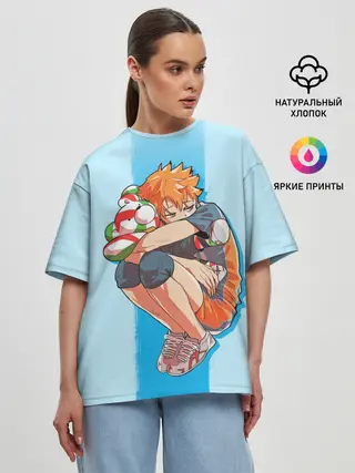 Женская футболка оверсайз / Хината на синем фоне