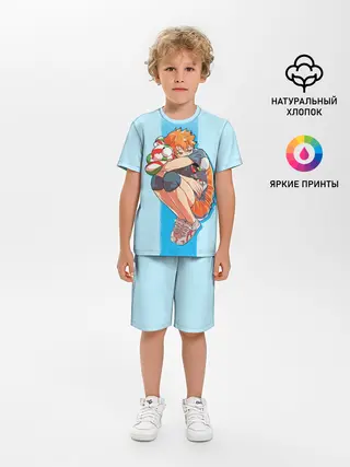 Детская пижама с шортами / Хината на синем фоне