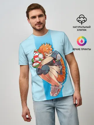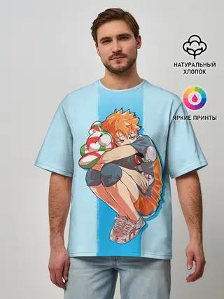 Мужская футболка оверсайз / Хината на синем фоне