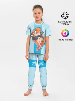 Детская пижама с брюками / Хината на синем фоне