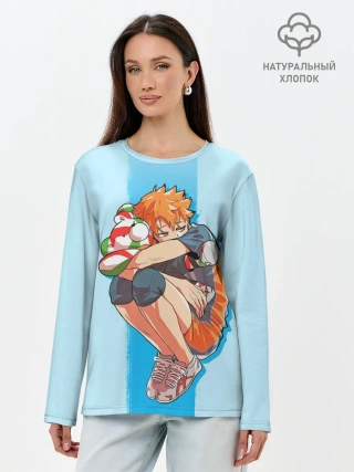 Лонгслив женский. Хлопок / Хината на синем фоне