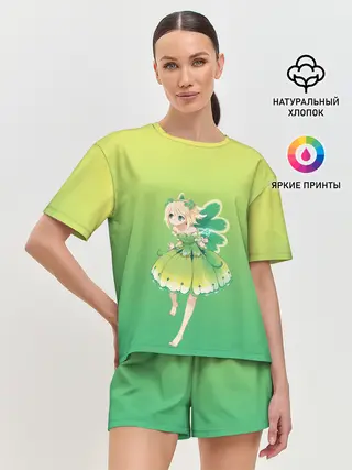 Женская базовая футболка / Kimetsu no Yaiba желтое пламя