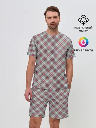 Мужская пижама с брюками / Текстура в клетку
