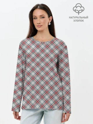 Лонгслив женский. Хлопок / Текстура в клетку