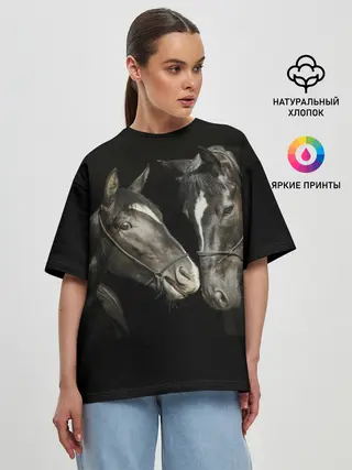 Женская футболка оверсайз / Лошади