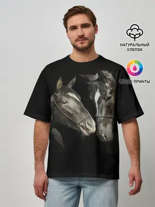 Мужская футболка оверсайз / Лошади