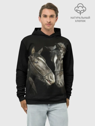 Худи мужской база хлопок / Лошади