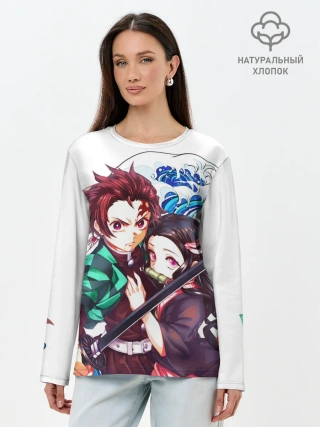 Лонгслив женский. Хлопок / Клинок рассекающий демонов