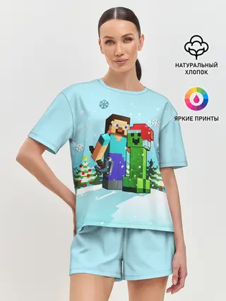 Женская пижама с шортами / MINECRAFT НОВОГОДНИЙ