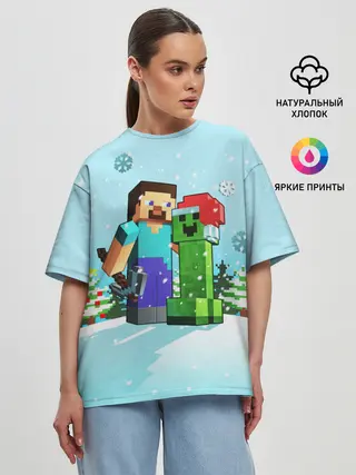 Женская футболка оверсайз / MINECRAFT НОВОГОДНИЙ