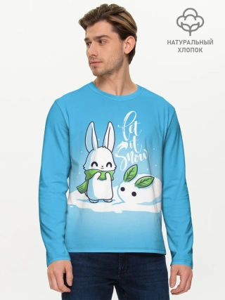 Мужской лонгслив базовый / Let it snow. Зайчик и снежок