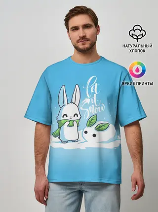 Мужская футболка оверсайз / Let it snow. Зайчик и снежок