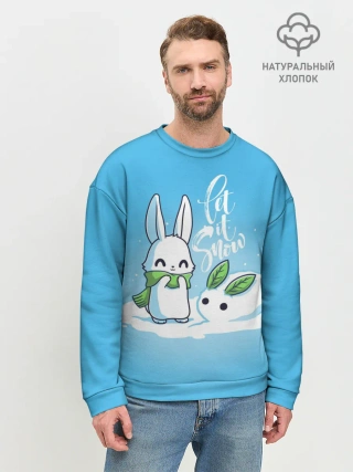 Мужской свитшот базовый / Let it snow. Зайчик и снежок