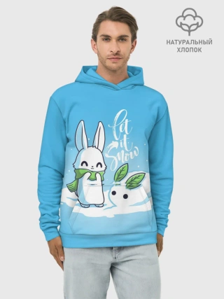Худи мужской база хлопок / Let it snow. Зайчик и снежок