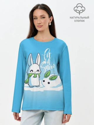 Лонгслив женский. Хлопок / Let it snow. Зайчик и снежок
