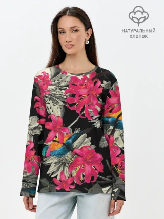 Лонгслив женский. Хлопок / Цветы