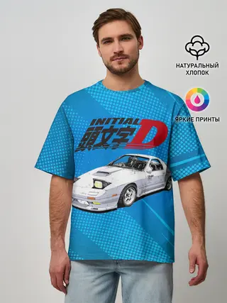 Мужская футболка оверсайз / Initial D машина на голубом фоне