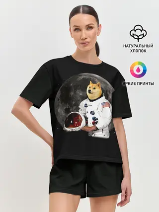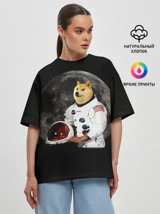 Женская футболка оверсайз / Доги Космонавт
