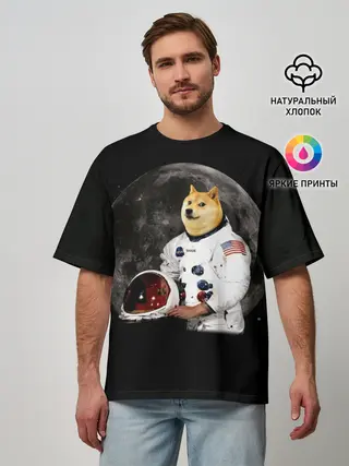 Мужская футболка оверсайз / Доги Космонавт