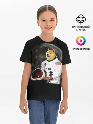 Детская базовая футболка / Доги Космонавт