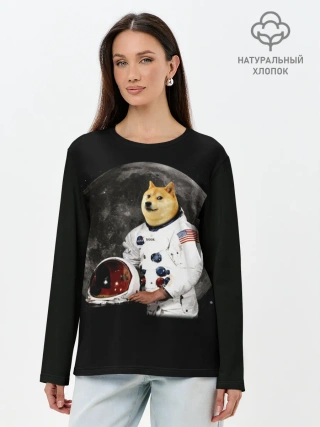 Лонгслив женский. Хлопок / Доги Космонавт