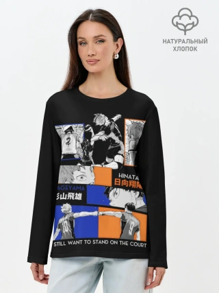 Лонгслив женский. Хлопок / Хината и Кагеяма