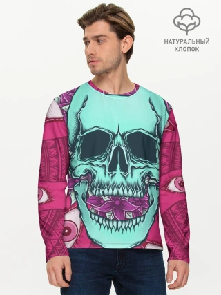 Мужской лонгслив базовый / Череп в цветах