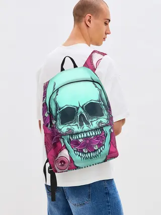 Рюкзак джинсовый / Череп в цветах