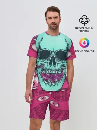 Мужской костюм с шортами / Череп в цветах