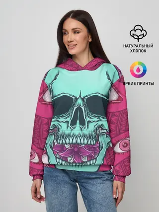Женское худи / Череп в цветах