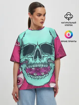 Женская футболка оверсайз / Череп в цветах