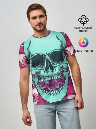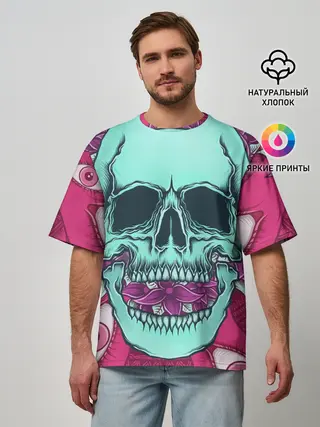 Мужская футболка оверсайз / Череп в цветах