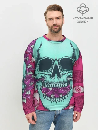 Мужской свитшот базовый / Череп в цветах