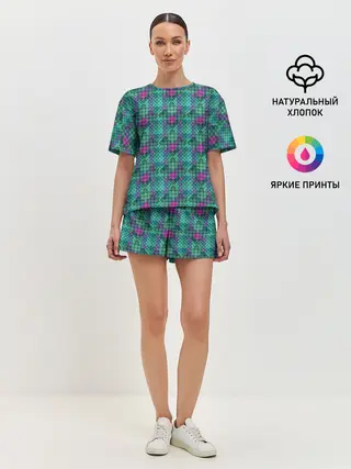 Женская пижама с шортами / Бирюзовый клетчатый узор