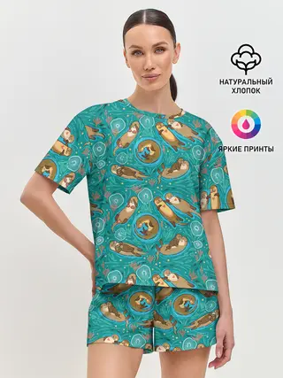 Женская пижама с шортами / Весёлые выдры